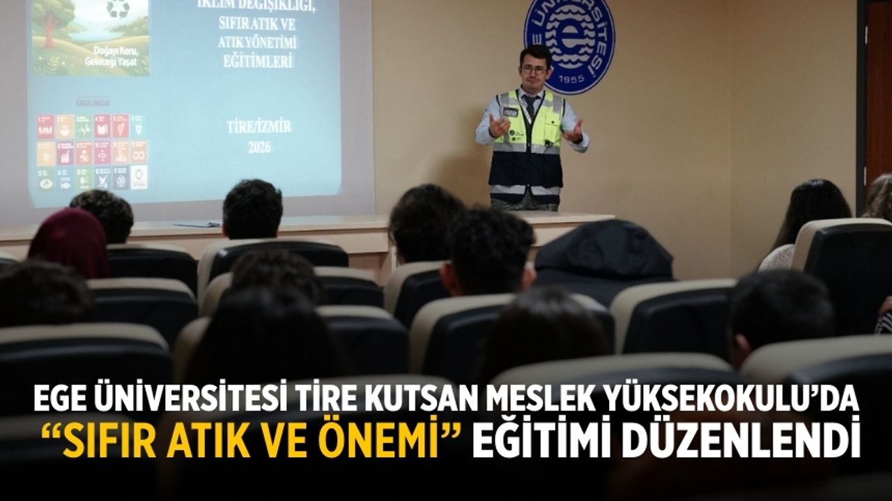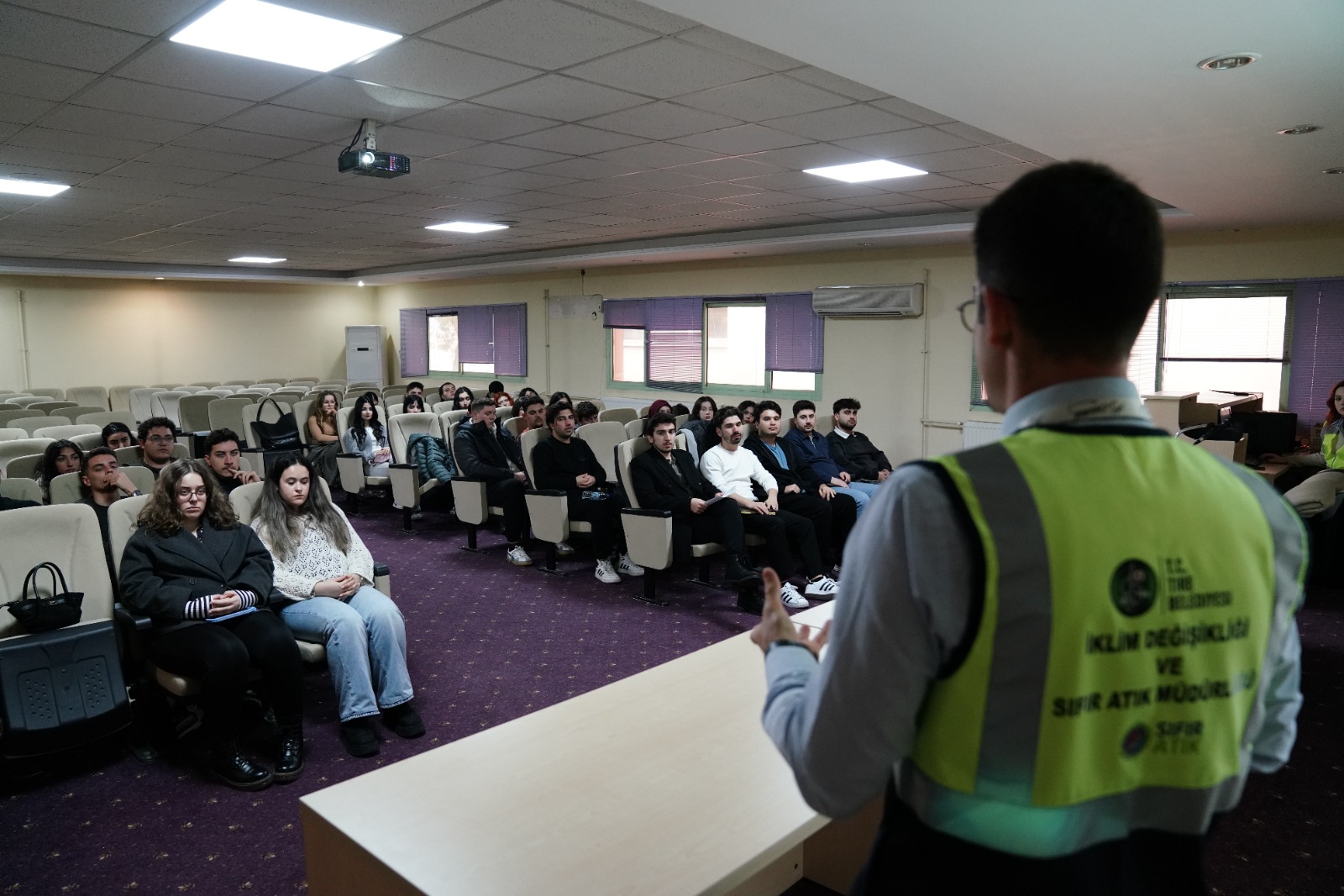 Eğitim, Ege Üniversitesi Tire Kutsan Meslek Yüksekokulu öğrencileri ile akademik ve idari personelin katılımıyla konferans salonunda yapıldı. Programda; sıfır atık yaklaşımının çevresel, ekonomik ve sosyal boyutları, atıkların kaynağında ayrıştırılması, geri dönüşüm süreçleri, döngüsel ekonomi, su ve karbon ayak izi ile bireysel sorumlulukların önemi kapsamlı şekilde ele alındı.