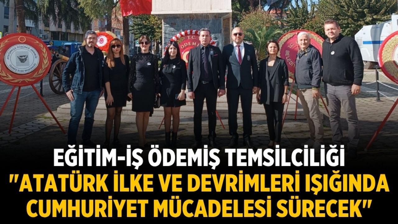 Eğitim ve Bilim Emekçileri Sendikası (Eğitim-İş) Ödemiş Şubesi, Ulu Önder Gazi Mustafa Kemal Atatürk’ü ebediyete intikalinin 87. yıl dönümünde büyük bir saygı, minnet ve özlemle andı. Şube tarafından yapılan resmi açıklamada, Atatürk'ün mirasının korunmasının, devrim ve ilkelerinin savunulması ile mümkün olduğu vurgulandı.