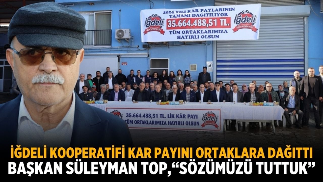 İğdeli Kooperatifi Başkanı Süleyman Top, yaptığı açıklamada zorlu ekonomik koşullara rağmen kooperatifin ayakta kalmayı başardığını vurguladı. Top, “Kriz oldu ama dimdik durduk. Zor zamanları birlik içinde geçirdik. Ne söz verdiysek yerine getirdik. Bugün kâr paylarımızın tamamını ortaklarımıza dağıtmanın gururunu yaşıyoruz” dedi.