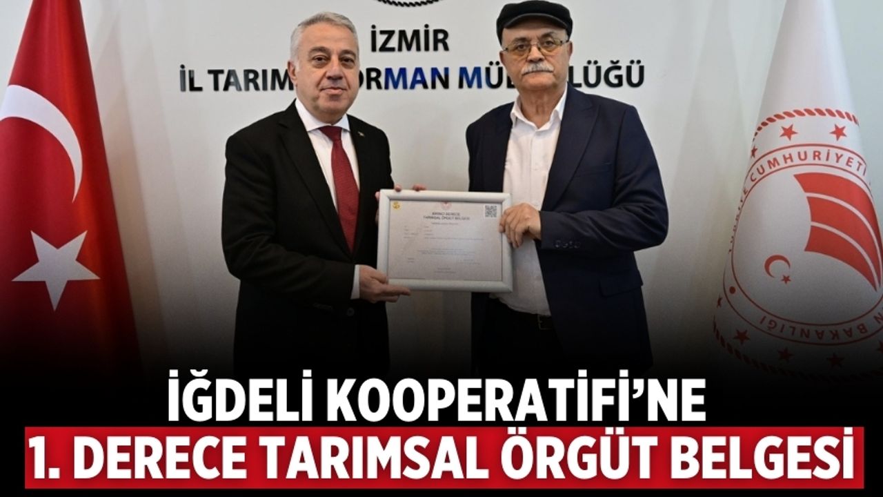 21 Aralık Dünya Kooperatifçilik Günü kapsamında İzmir İl Tarım ve Orman Müdürlüğü ev sahipliğinde düzenlenen programda, İğdeli Kooperatifi’nin 1. Derece Tarımsal Örgüt Belgesi, İl Müdürü Mustafa Şahin tarafından kooperatif başkanı Süleyman Top'a takdim edildi.
