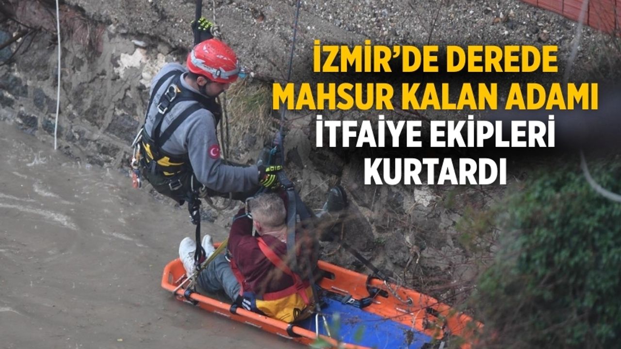 İzmir’de etkili olan sağanak yağış sırasında, 50–55 yaşlarındaki bir erkek Yeşildere’de dere içinde uyuduğu sırada yükselen sulara kapıldı. Yaklaşık 20 metre sürüklenen kişiyi tutunduğu noktada, ihbar üzerine olay yerine gelen İzmir Büyükşehir Belediyesi İtfaiye Dairesi Başkanlığı ekipleri kurtardı. Su seviyesinin yaklaşık 2 metreye ulaştığı dereye vinç yardımıyla inen ekipler vatandaşı bulunduğu noktadan kurtardı. Sedye ile yaklaşık 10 metrelik duvardan çıkarılan yurttaş, sağlık ekiplerine teslim edilerek hastaneye sevk edildi.