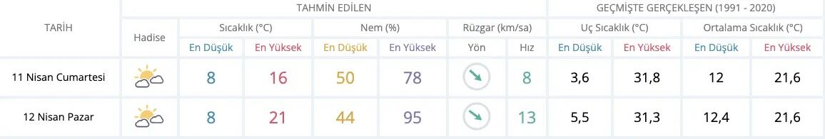 Hava sıcaklığının ise bugün 16 derece, pazar günü 21 derece olması bekleniyor.