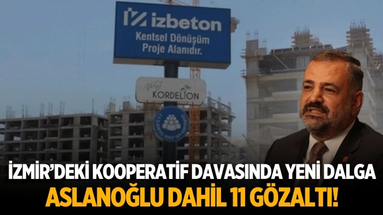 Başsavcılıktan yapılan duyuruda, zimmet suçuna yönelik hazırlanan bilirkişi raporları doğrultusunda sorumlulukları tespit edilen 11 şüpheli hakkında gözaltı kararı verildiği bildirildi. Gözaltına alınanlar arasında daha önce kooperatif davasında tutuklu yargılanan CHP İzmir İl Eski Başkanı Şenol Aslanoğlu da bulunuyor.