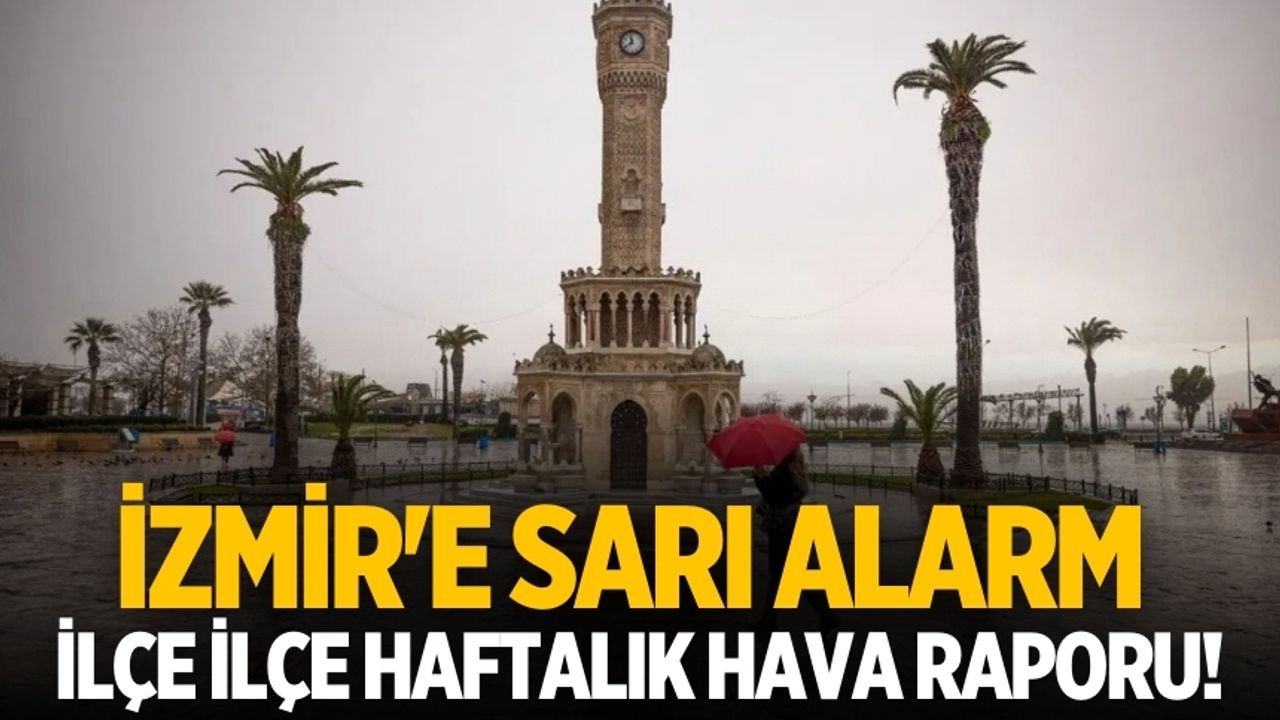 Beklenen olumsuz hava koşulları nedeniyle Meteoroloji Genel Müdürlüğü tarafından İzmir genelinde sarı kodlu uyarı yayımlandı. Yapılan açıklamada uyarının merkez dâhil tüm ilçeleri kapsadığı belirtilirken; sel, su baskını, yıldırım, yerel dolu yağışı, kuvvetli rüzgâr ve ulaşımda aksamalar gibi risklere karşı dikkatli olunması istendi.