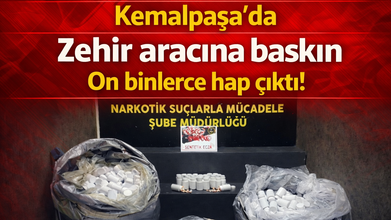 Şüpheli hafif ticari araç, Kemalpaşa'da ekiplerce durduruldu. Yapılan aramada 156 bin 600 uyuşturucu hap bulundu, araçtaki T.E. gözaltına alındı.
