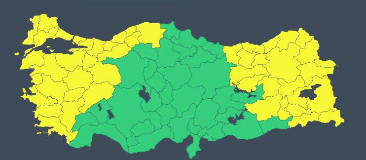 Meteoroloji'nin uyarı haritasına göre sarı kod verilen iller şunlar: