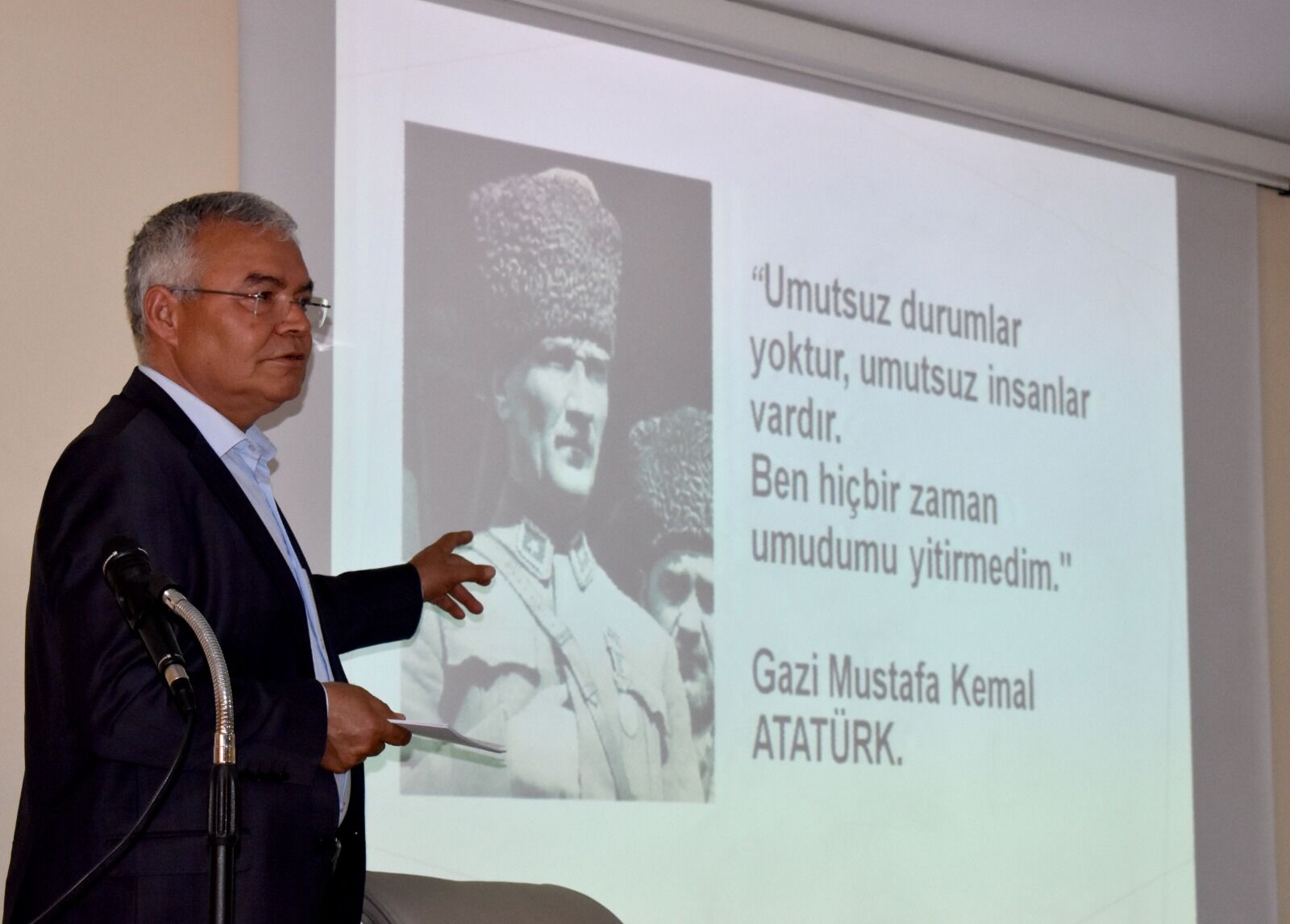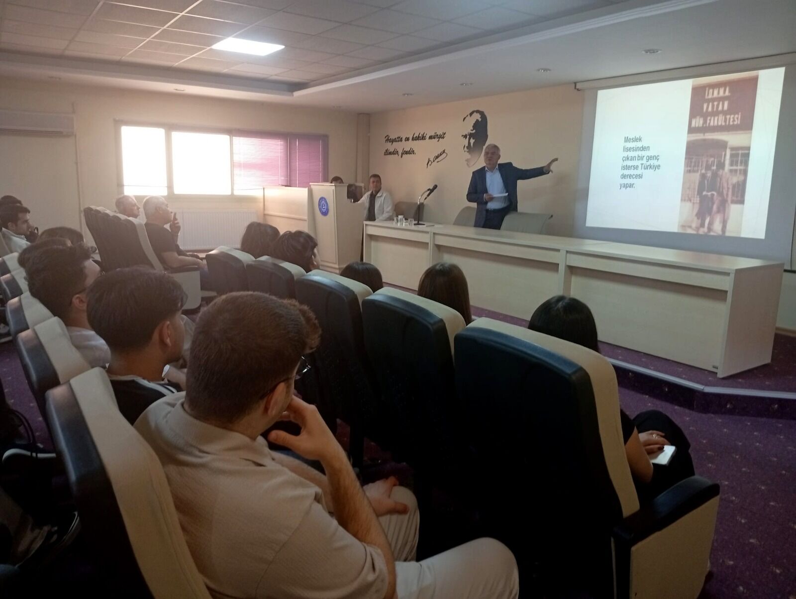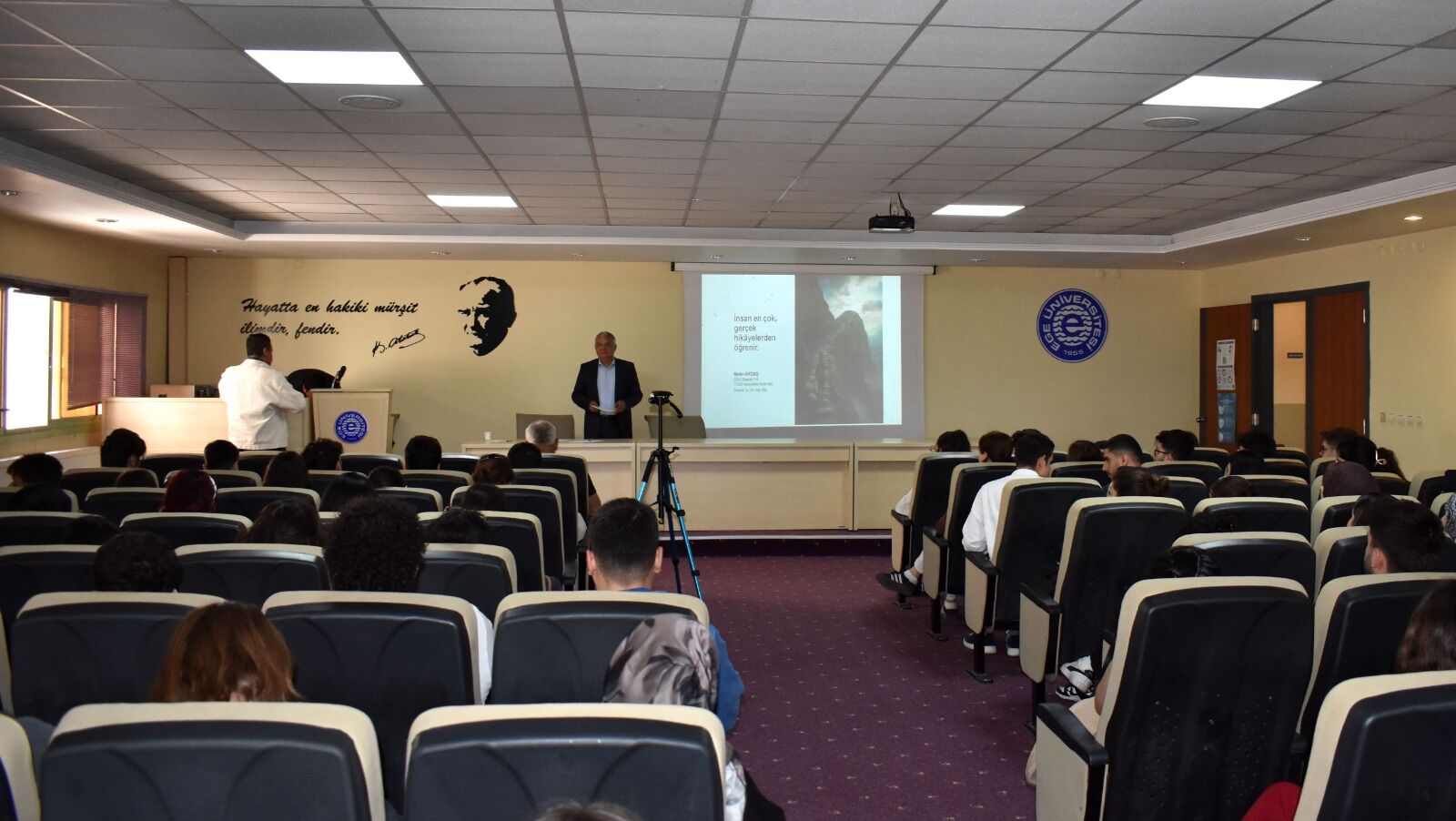Konuşmasına, “Ben size bir sunum yapmaya gelmedim. Ben size hayatın içinden konuşmaya geldim. Çünkü ben şuna inanıyorum: İnsan en çok, gerçek hikâyelerden öğrenir” sözleriyle başlayan Metin Akdaş, disiplin, sabır, çalışma ahlakı, güven, takım ruhu ve insan yetiştirmenin değeri gibi önemli kavramları güçlü vurgularla aktardı.