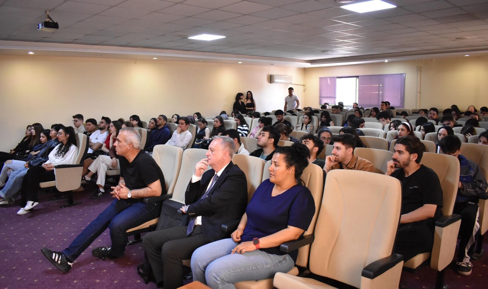 Konferans sonunda Akdaş öğrencilerin sorularını yanıtladı ve birlikte hatıra fotoğrafı çekildi.