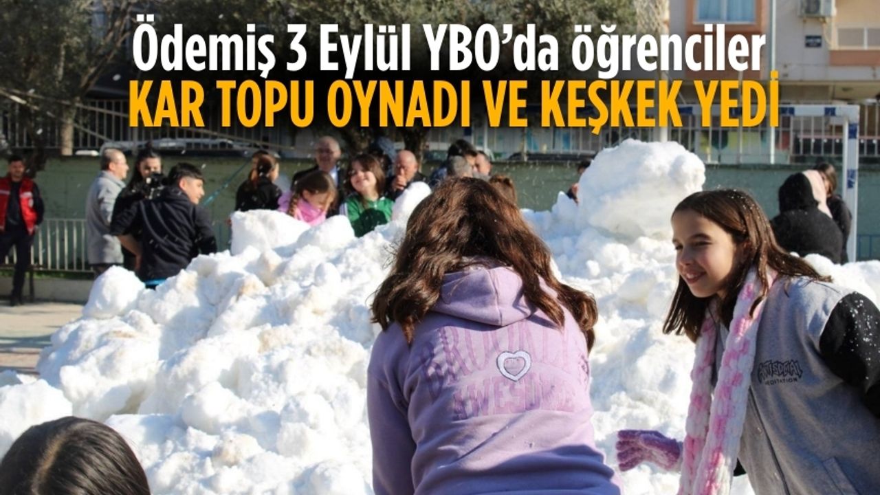 Etkinlik kapsamında öğrenciler, sosyal etkileşimi ve paylaşım kültürünü destekleyen “Kar Topu” etkinliğinde bir araya geldi. Renkli görüntülere sahne olan etkinliğin ardından, hayırsever bir vatandaş tarafından öğrencilere keşkek ikramında bulunuldu.