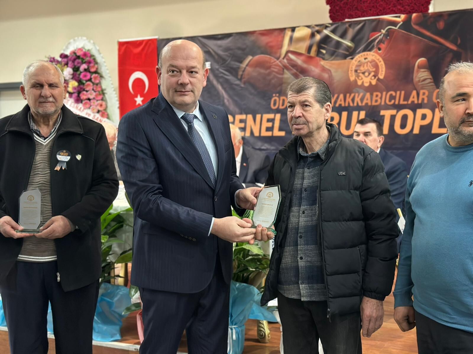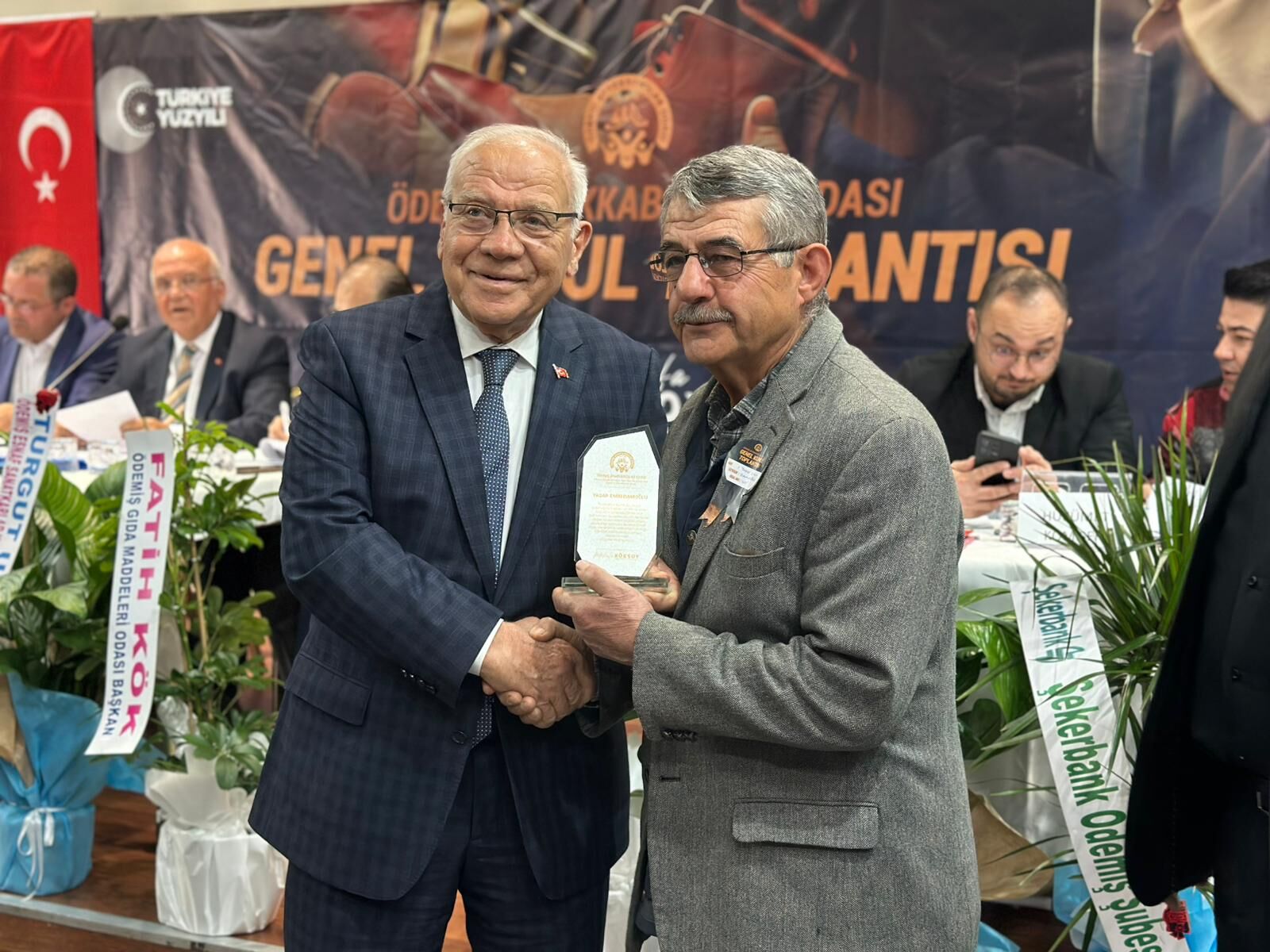 Genel kurulun sonunda; AK Parti İzmir Milletvekili Yaşar Kırkpınar, İzmir Esnaflar ve Sanatkârlar Odaları Birliği Başkanı Yalçın Ata, İzmir Esnaf ve Sanatkârlar Kredi ve Kefalet Kooperatifleri Birliği Başkanı Erdem Hünü, Madeni Eşya Sanatkârları Federasyonu Başkanı Özcan Saraçoğlu ve Ödemiş Eski Belediye Başkanı Bekir Keskin, uzun yıllardır esnaflık yapanlara plaket takdim etti.