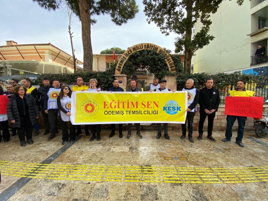 Basın açıklaması, Eğitim Sen Ödemiş Temsilciliği adına Temsilci Tayfun Bengi tarafından okundu. Açıklamada, 2 Mart Pazartesi günü İstanbul’un Çekmeköy ilçesinde bulunan Taşdelen Borsa İstanbul Mesleki ve Teknik Anadolu Lisesi’nde meydana gelen bıçaklı saldırı hatırlatılarak, olayda iki öğretmen ve bir öğrencinin yaralandığı, yaralanan öğretmenlerden birinin hayatını kaybettiği ifade edildi.