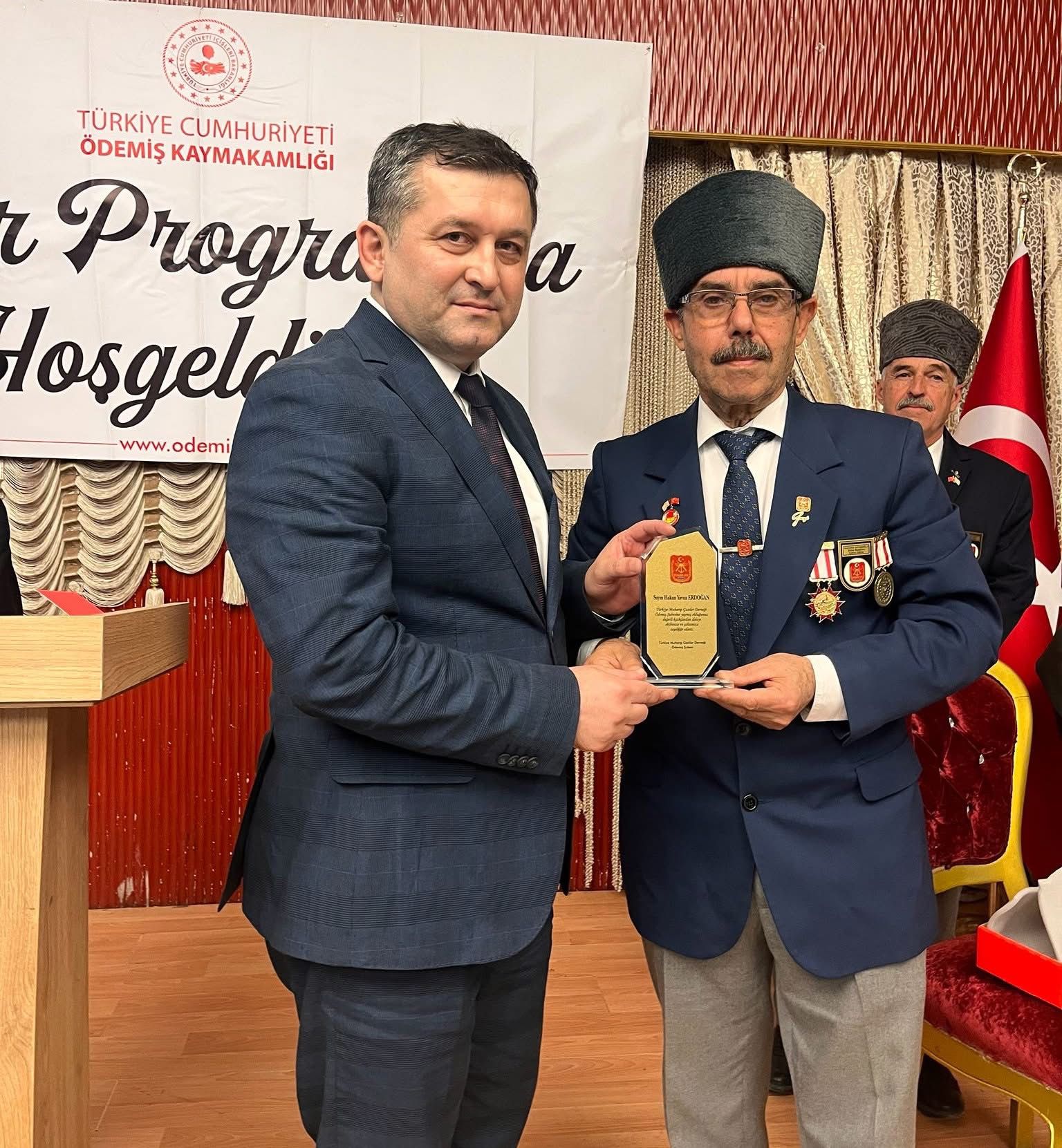 Program sonunda, Ödemiş Muharip Gaziler Derneği Başkanı Selahattin Aktaşoğlu, Kaymakam Hakan Yavuz Erdoğan’a günün anısına plaket takdim etti.