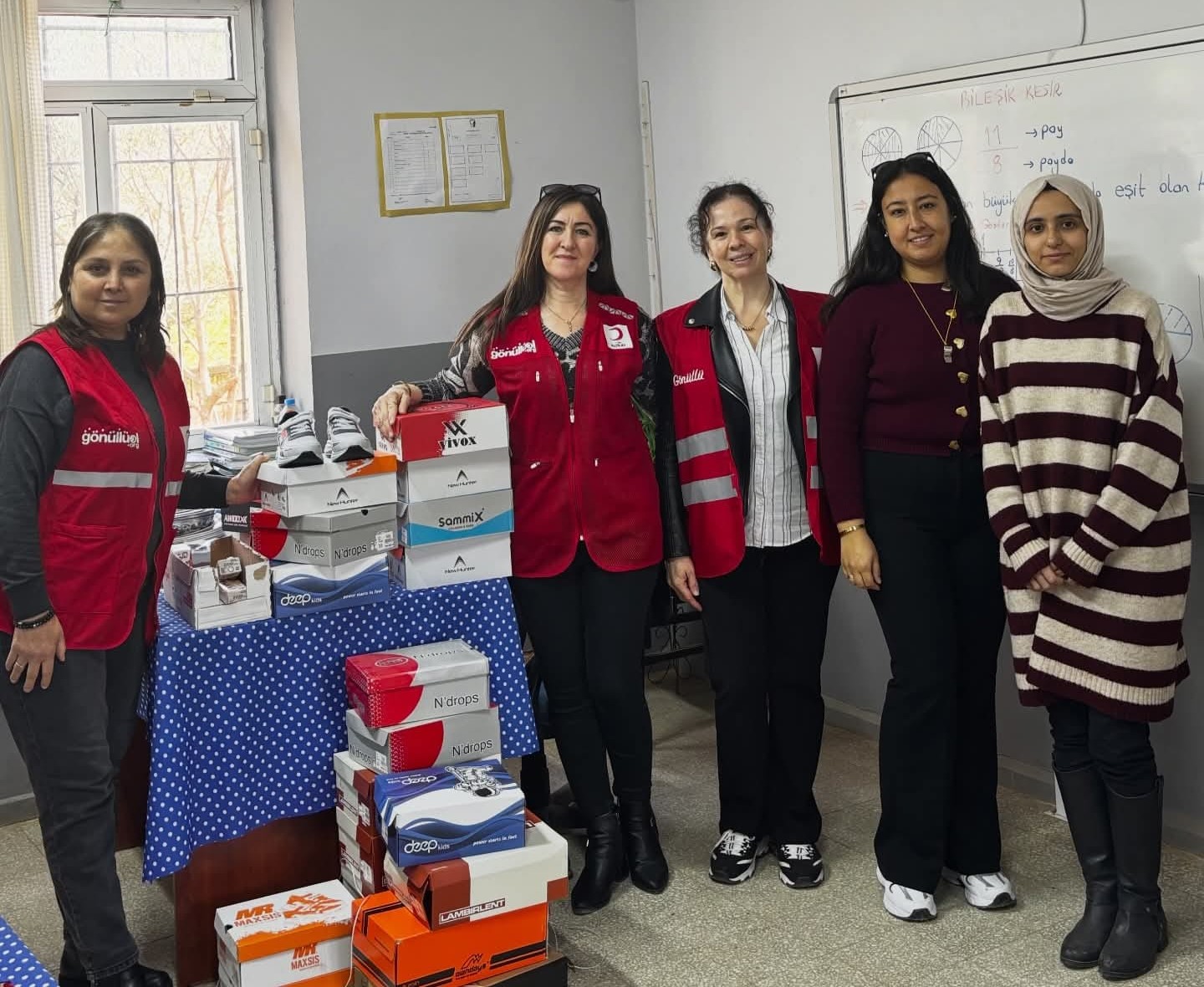 Kızılay Kadın Kolları Başkanı Dilek Öztürk ve yönetiminin katılımıyla gerçekleştirilen etkinlikte, öğrencilere ayakkabı, kek ve meyve suyu dağıtıldı.