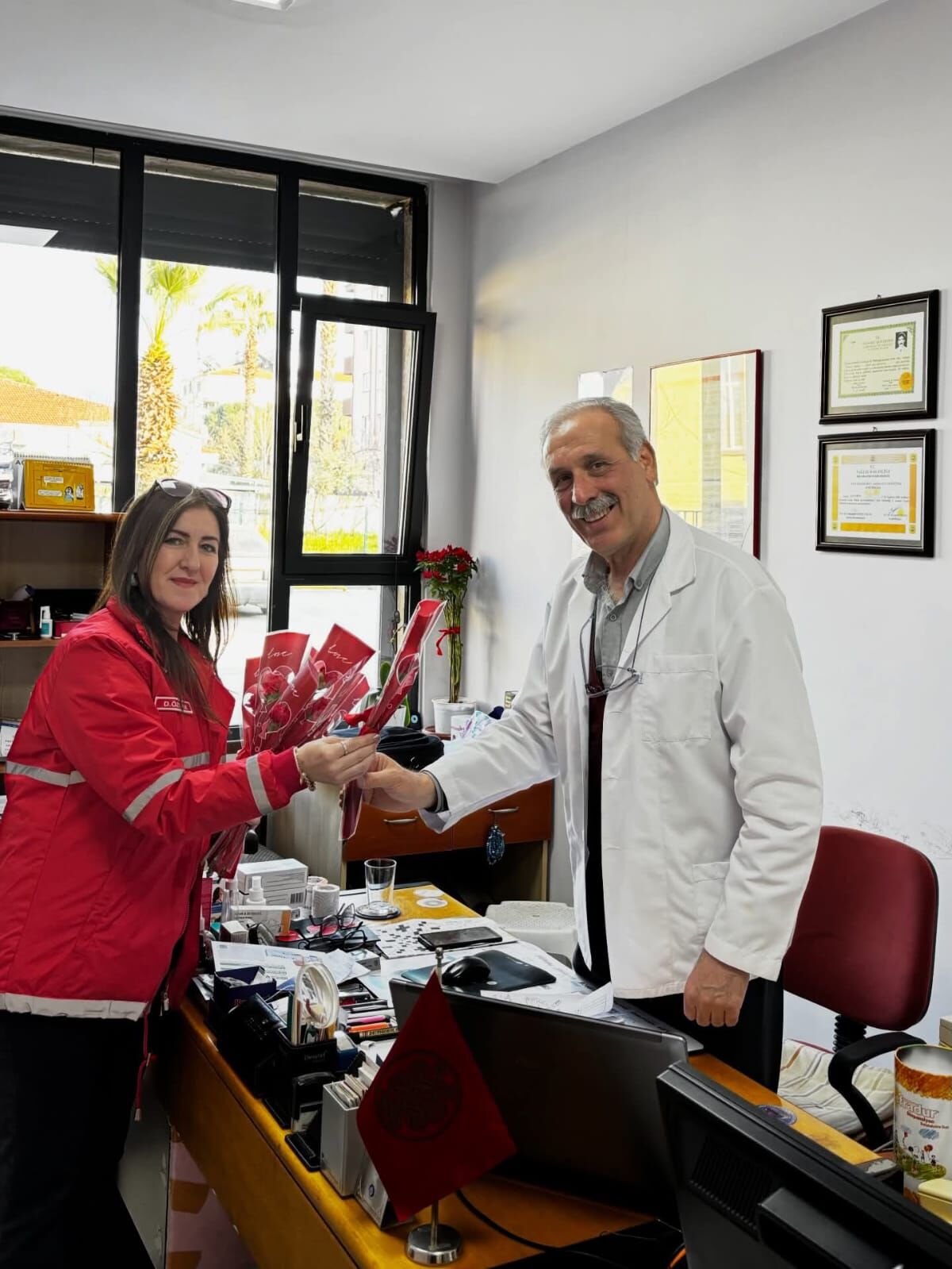 14 Mart Tıp Bayramı kapsamında gerçekleştirilen ziyarette sağlık çalışanlarının bayramını kutlayan Kızılay Ödemiş Şubesi, günün anlam ve önemine dikkat çekti. Sağlık emekçilerine karanfil takdim eden şube yetkilileri, fedakârca görev yapan tüm sağlık çalışanlarına teşekkür etti.