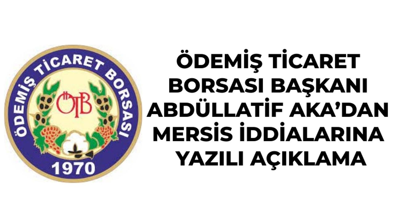Ödemiş Ticaret Borsası Yönetim Kurulu Başkanı Abdüllatif Aka, sosyal medyada son günlerde yayılan “MERSİS kaydı olmadığı için temsil yetkisinin düşürüldüğü” yönündeki iddialara yönelik yazılı bir açıklama yaparak sürecin tüm detaylarını kamuoyuyla paylaştı.