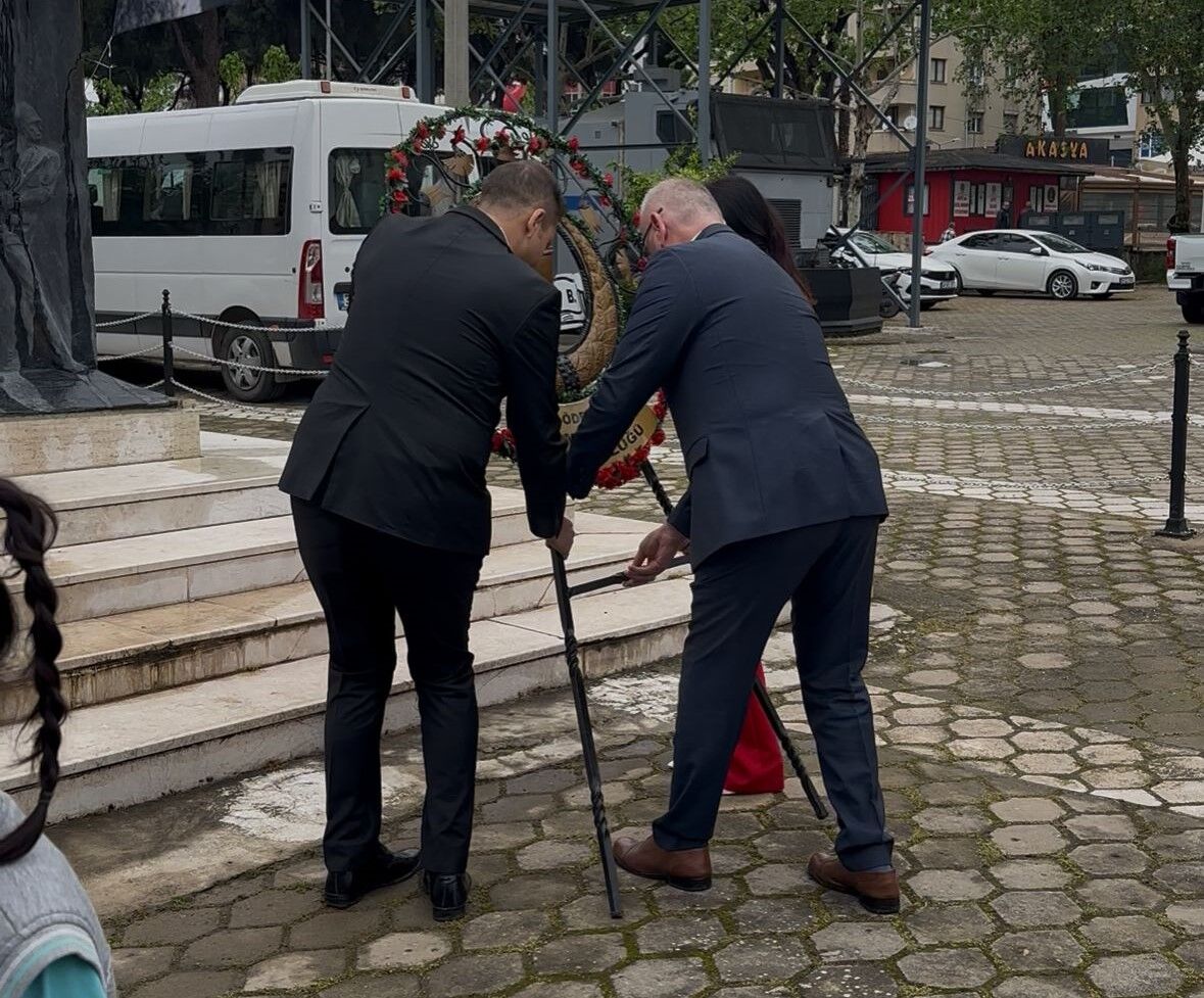 Törende, çelenk Ödemiş İlçe Milli Eğitim Müdürü Sunullah Desticioğlu tarafından Atatürk Anıtı’na sunuldu.