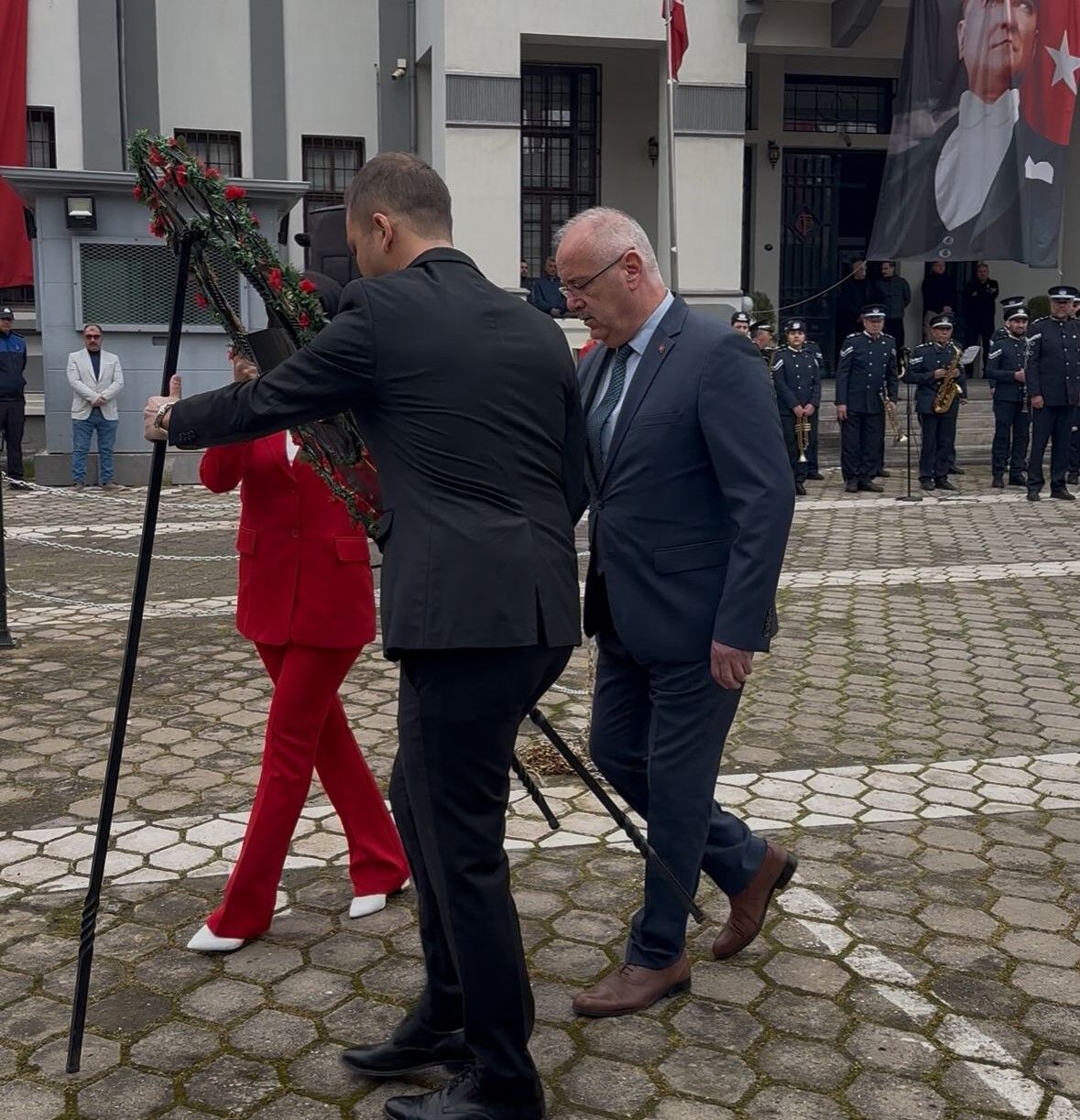 Düzenlenen törene Ödemiş Kaymakamı Hakan Yavuz Erdoğan, Ödemiş Belediye Başkanı Mustafa Turan, Ödemiş Cumhuriyet Başsavcısı Mehmet Karabulut, Ağır Ceza Hakimi Ali Sami Çetin, siyasi partilerin temsilcileri, sivil toplum kuruluşlarının temsilcileri, gaziler, öğretmenler, öğrenciler ve vatandaşlar katıldı.