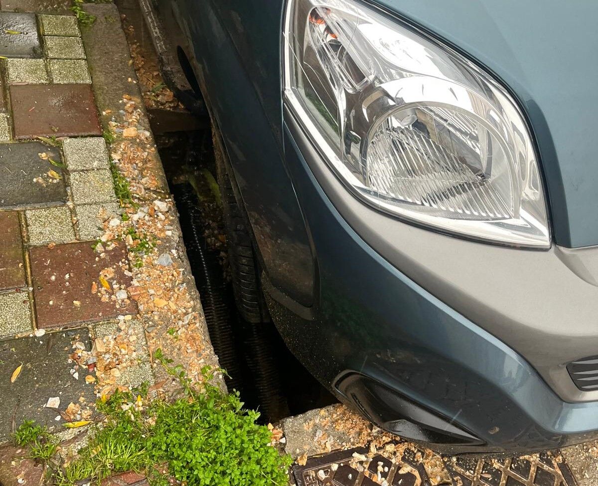 Edinilen bilgilere göre, sokakta zeminde oluşan ani çökme sonucu yolun bir bölümü zarar gördü. Park halinde bulunan otomobilin bir tekerleği oluşan göçüğe girerken, araçta maddi hasar meydana geldi.