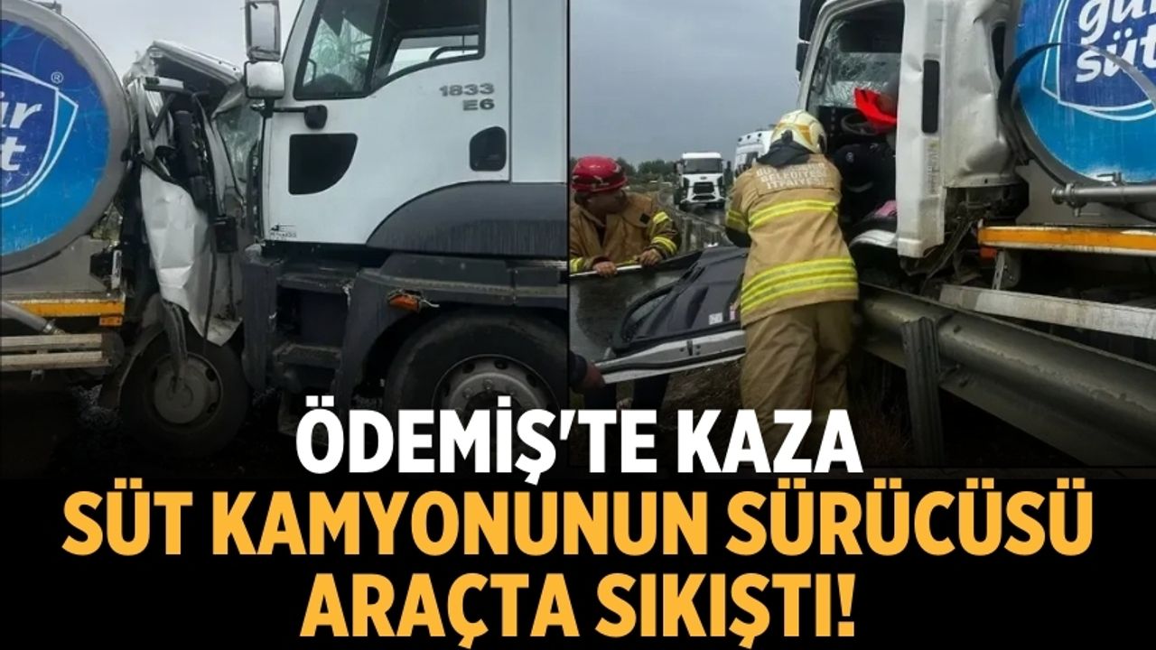 Ödemiş’in Balabanlı Mahallesi’nde meydana gelen trafik kazasında arkadan gelen bir kamyon süt kamyonuna çarptı. Kazada, süt kamyonunun sürücüsü sıkışarak yaralandı.