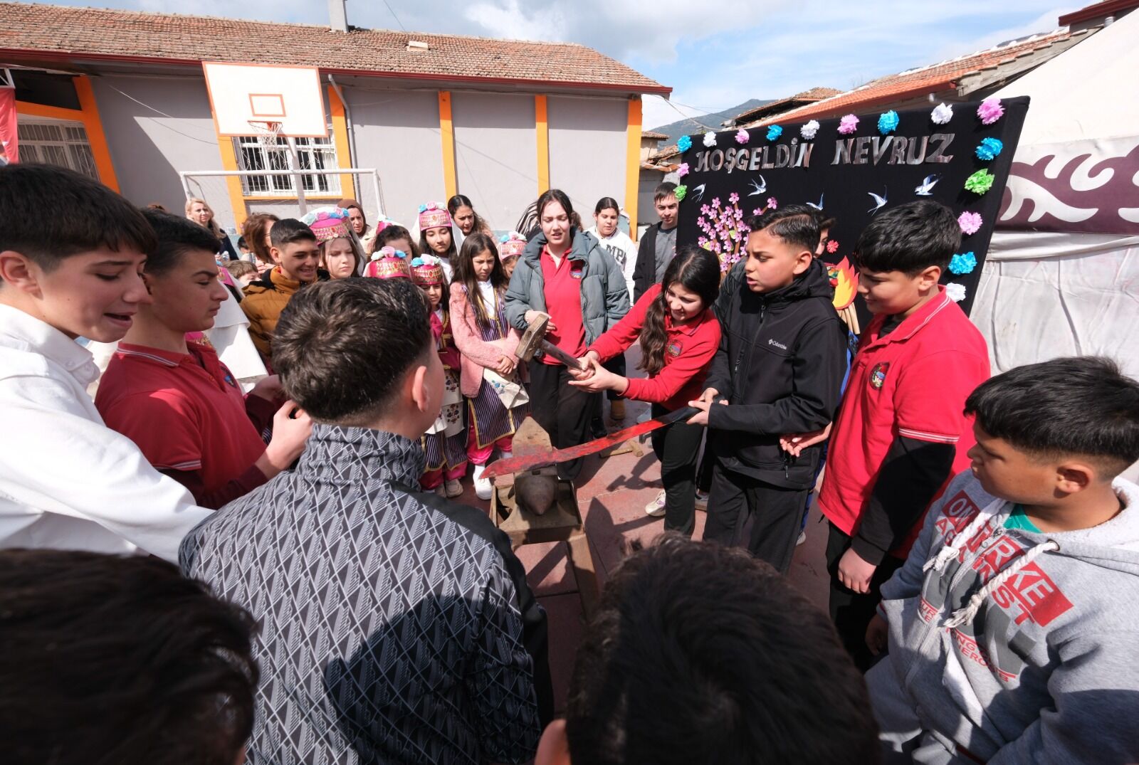 Daha sonrasında “Türk Günü” adlı oratoryo ve mehter takımı gösterisi sahnelenirken, etkinlik alanında geleneksel oyunlar oynandı. Nevruz geleneğinin simgelerinden olan ateş yakılarak üzerinden atlanırken, demir dövme ritüeli de gerçekleştirildi.