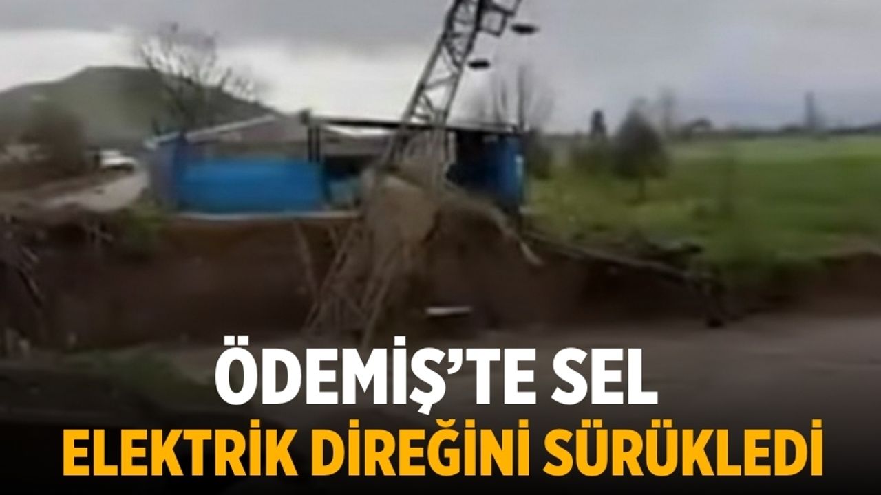 Yükselen sel suları dere yatağındaki elektrik direğini yerinden oynattı, trafo ise akıntının ortasında kaldı.