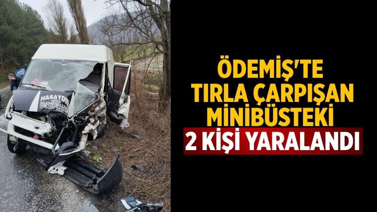 İzmir'in Ödemiş ilçesinde tırla çarpışan minibüsteki 2 kişi yaralandı.