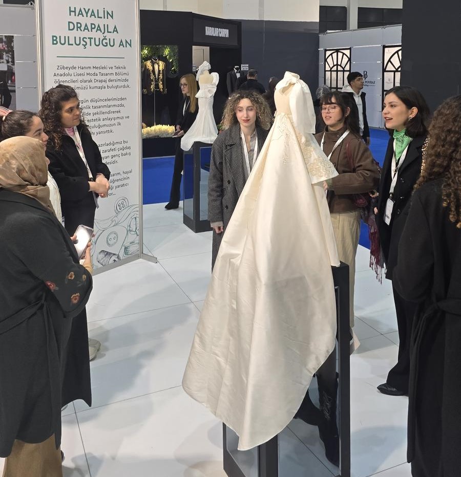 Fuarda lise düzeyinde katılım sağlayan tek okul olma özelliğiyle dikkat çeken Ödemiş Zübeyde Hanım Mesleki ve Teknik Anadolu Lisesi, Moda Tasarım Teknolojileri Bölümü öğrencilerinin okul atölyelerinde yürüttüğü tasarım–üretim çalışmalarıyla hazırladığı gelinlik tasarımlarını sektör profesyonelleri ve ziyaretçilerin beğenisine sundu. Öğrencilerin, atölye süreçlerinde edindikleri mesleki birikimi fuar ortamına taşıması; mesleki eğitimin uygulamalı gücünü görünür kıldı.