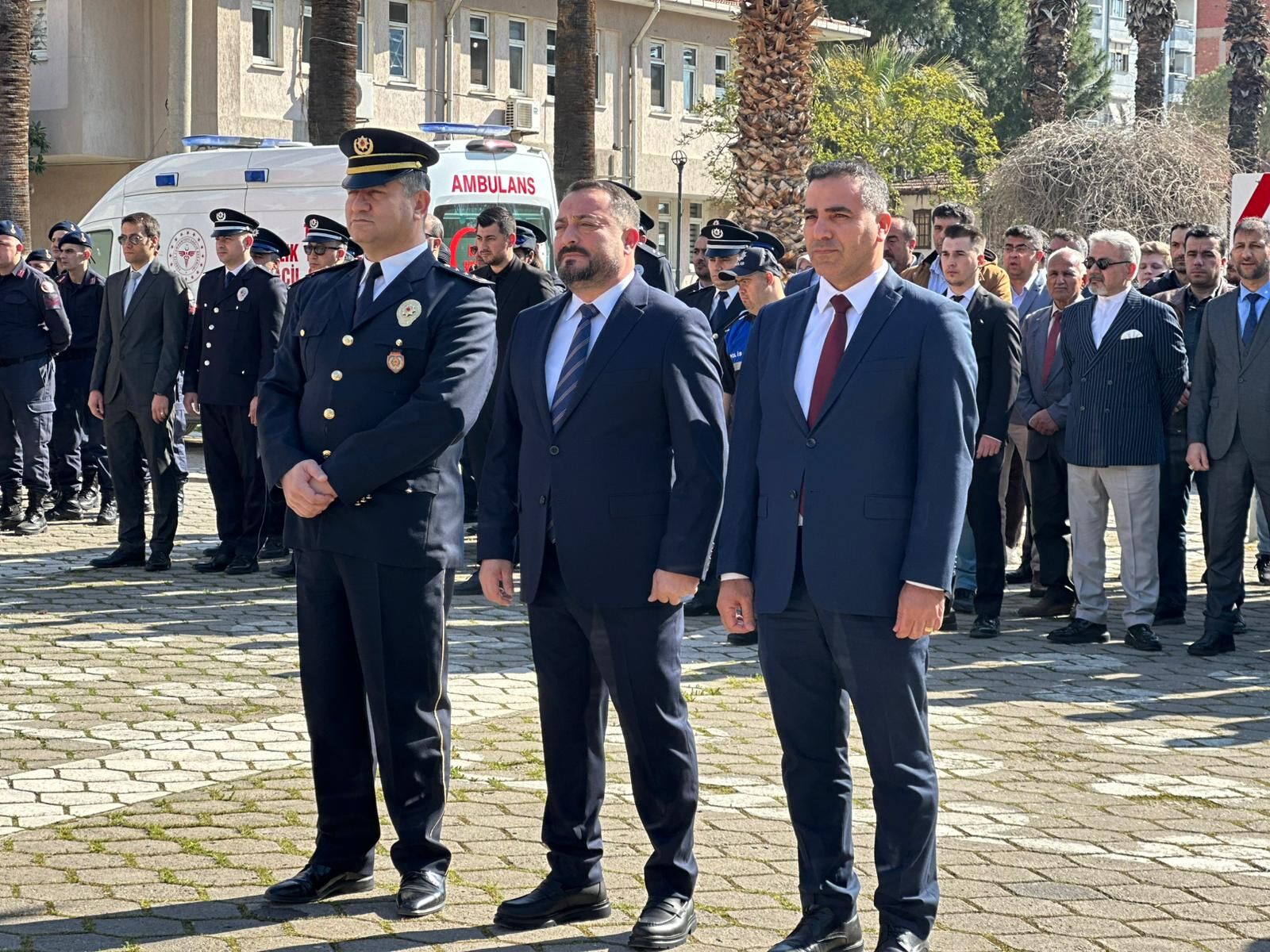 Hükümet Konağı önünde gerçekleştirilen törende, Ödemiş İlçe Emniyet Müdürü Hasan Özge tarafından Atatürk Anıtı’na çelenk sunuldu. Tören, saygı duruşu ve İstiklal Marşı’nın okunmasıyla devam etti.