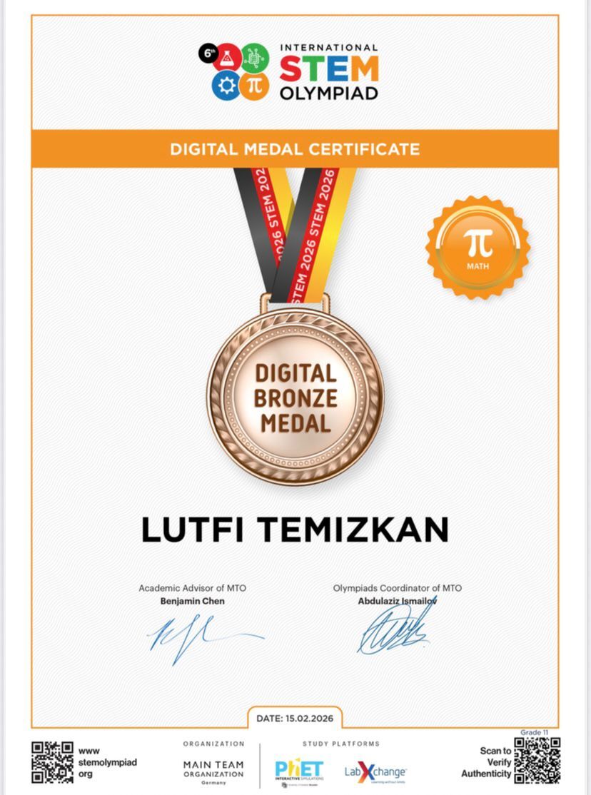 Genç öğrenci, 1 Şubat 2026 tarihinde gerçekleştirilen eleme turunu başarıyla geçtikten sonra, 15 Şubat 2026’da yapılan yarı final turunda da üstün performans sergileyerek adını dereceye yazdırdı. Matematik alanındaki analitik düşünme becerisi ve problem çözme yetkinliğiyle dikkat çeken Temizkan, bronz madalyanın sahibi oldu.