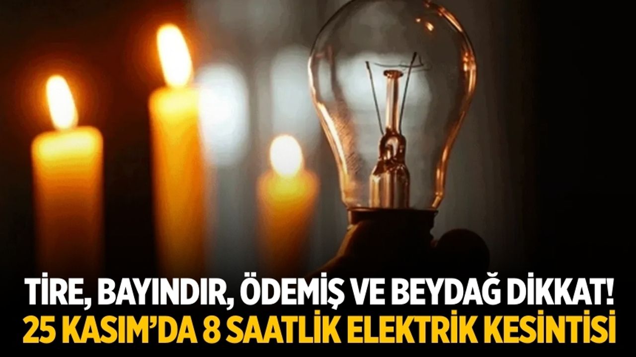 İzmir’de 25 Kasım Salı günü geniş kapsamlı elektrik kesintisi yapılacak. GDZ Elektrik’in planlı bakım çalışmaları kapsamında Tire, Bayındır, Ödemiş ve Beydağ ilçelerindeki birçok mahallede 09.00–17.00 saatleri arasında enerji kesintisi uygulanacak. Kesintilerin uzun süreli olması nedeniyle vatandaşların önlem alması istendi.
