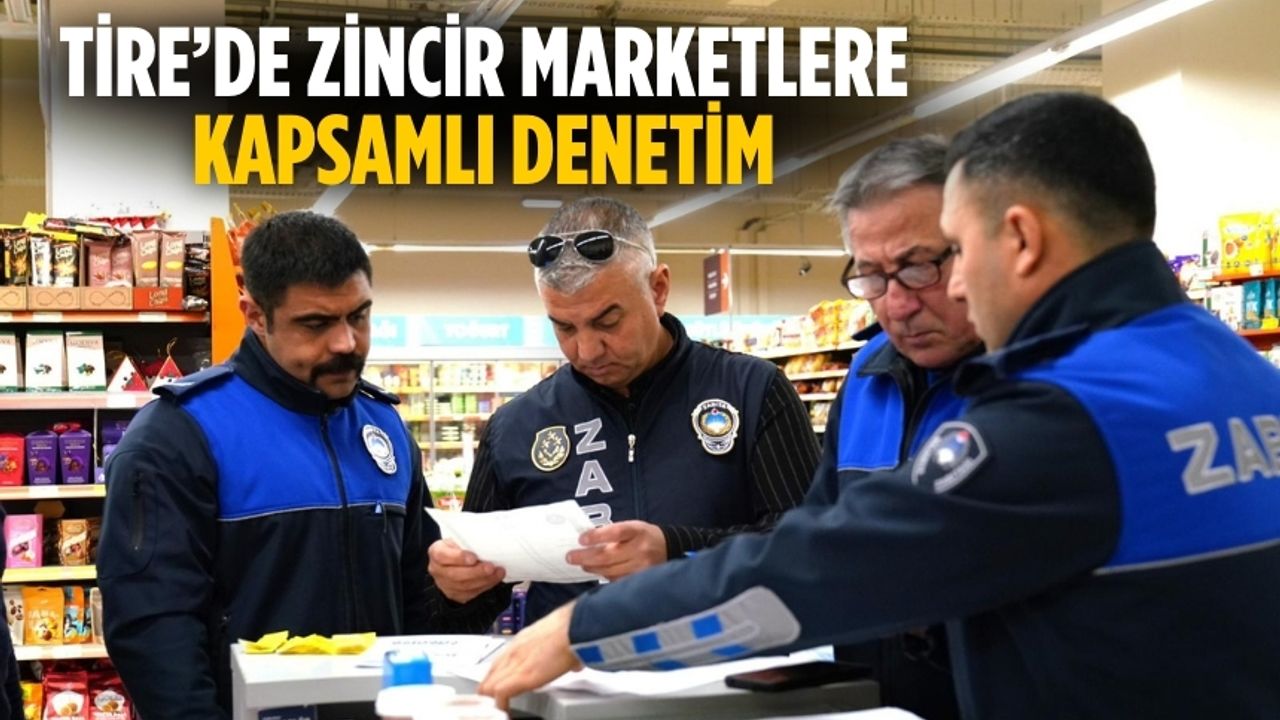 Tire’de zabıtanın, zincir marketlerde gerçekleştirdiği denetimlerde raflarda yer alan ürünler tek tek incelenirken, mevzuata aykırı ve tüketici sağlığını riske atabilecek ürünlere yönelik gerekli işlemler yapıldı.